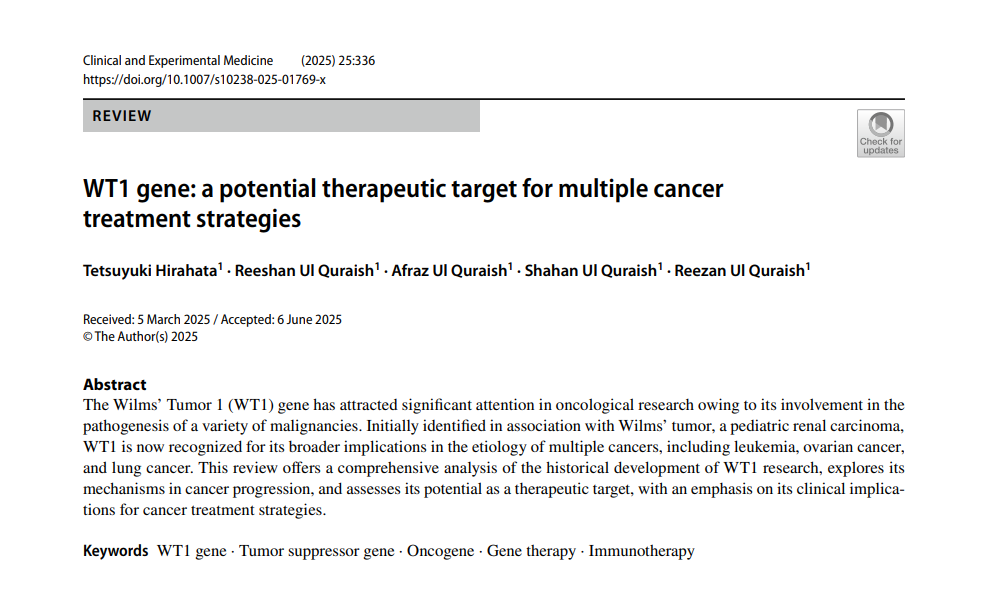 WT1 is now recognized for its broader implications in the etiology of multiple cancers, including leukemia, ovarian cancer,